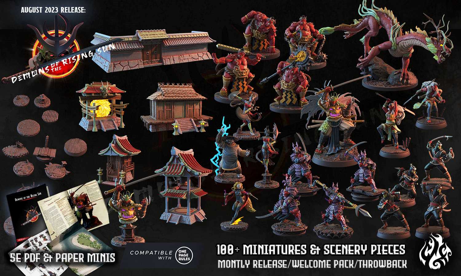 The Monthly collection of fantasy miniatures, scenery & terrain pieces, a Welcome & a Hero miniature Pack, exclusive access access to our Discord Server & Facebook group, exclusive discount to our MMF shop and other cool benefits!