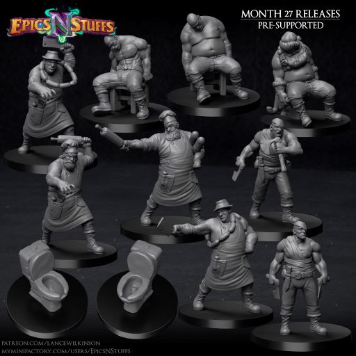 The aim is to produce at least a series of models per month, the longer I do this the more proficient I will become which should hopefully manifest itself in even higher quality and quicker turnaround. ALL Patrons get a 50% discount code for the Epics 'N' Stuffs My Mini Factory account :D *All models are for personal use unless otherwise stated or you're a Patron of the 'Travelling Merchant' tiers Got a question? Please don't hesitate to ask :)