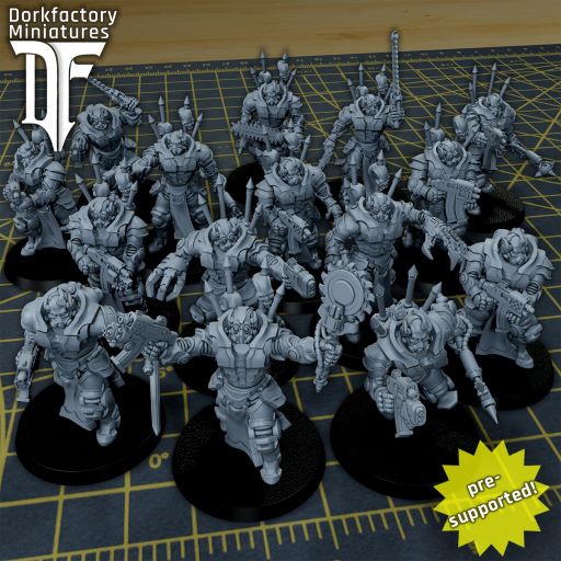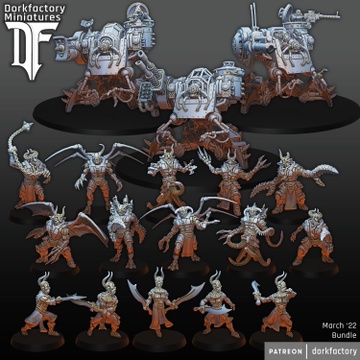 My name is Charlie. I'm here to create the dark SciFi miniatures I've always dreamt of and share them with you. Support from this patreon is what keeps the models flowing. As a supporter, you get access to monthly bundles of printable minis, and several other rewards (info below). The bundles include the new sculpts for that month as well as some previously released sets. On top of that, special events and patron bonuses happen all the time!